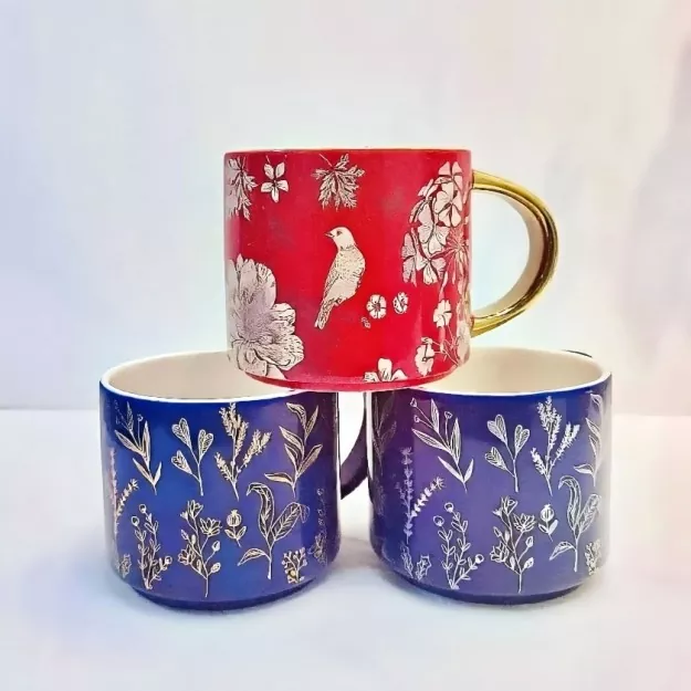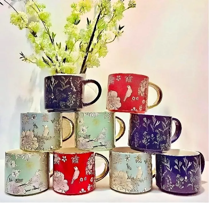 Ten ceramiczny kubek z galwanizowanym złotym uchwytem, ​​starannie wykonany z naklejkami, ucieleśnia wyjątkowy urok inspirowany naturą. Niezależnie od tego, czy są to delikatne tekstury kwitnących kwiatów, żywe formy zwinnych ptaków, czy urzekające wzory naturalnych bloków kolorów, kubek delikatnie oddaje prezenty flory, fauny i żywych kolorów. Aby pasować do każdego stylu, uchwyt kubka można dostosować. Wersja pozłacana świeci bogatym, złotym odcieniem, który przypomina 18-karatowy złoto, dodając odrobinę wyrafinowania. Można go również dostosować do ulubionego koloru.