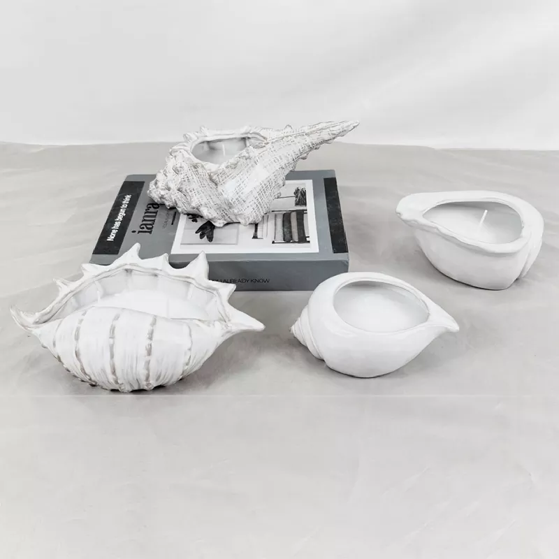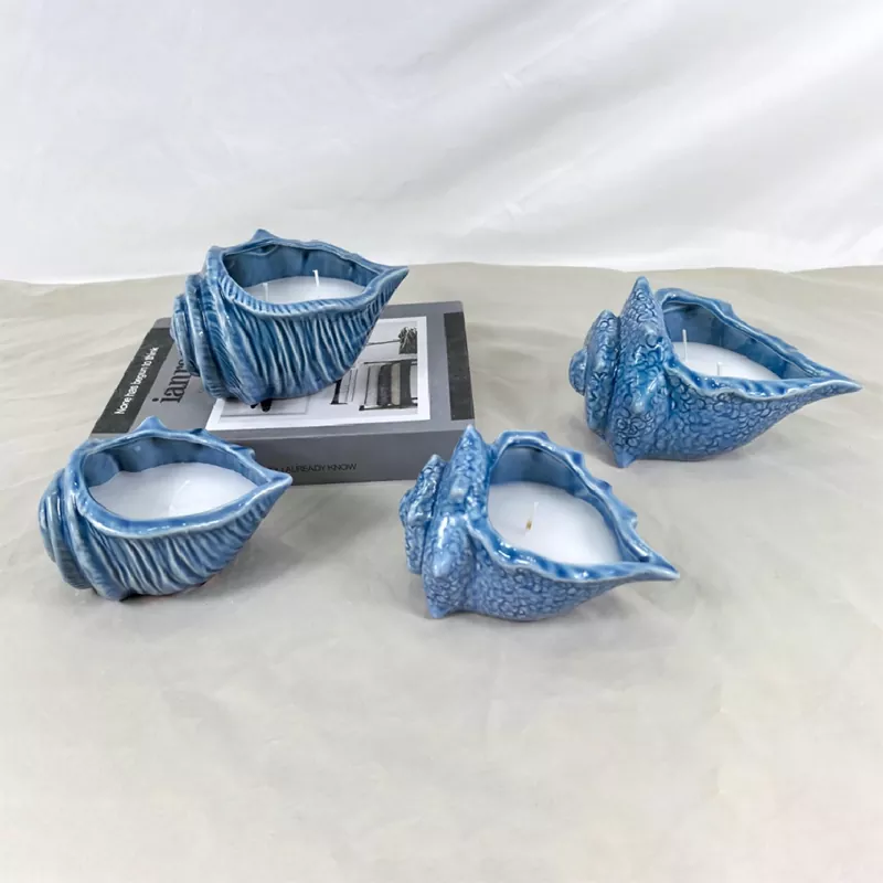 Od białej do jasnoniebieskiego, od równiny do beżu, pięciu ceramicznych świec ds. Morskich ma swój własny charakter: jeden przypomina zapiekniętą skorupę, zaokrągloną fala, jej linie tak drobne jak pocałunek na plaży; Inny replikuje elegancką spiralę spiralnej skorupy, jej glazura wystarczająco półprzezroczystej, aby odzwierciedlić światło świec; I wreszcie, czysta biała wersja, przypominająca światło księżyca złocone na czubku skorupy ... każda krzywa i konsystencja są ręcznie wyrzucane przez rzemieślników ceramicznych, a po strzelaniu w wysokiej temperaturze wydaje się tak miękka i gładka jak prawdziwa brzeg morza. Te ceramiczne świecy o mopie z łatwością czyszczą ściereczką, dzięki czemu są wygodne i piękne na codzienne wystawy.