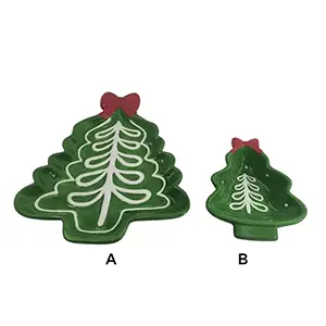Talerz Choinkowy Ręcznie malowany Prezent Świąteczny występuje w dwóch wersjach: Wersja A (duża) nadaje się do serwowania dań głównych i deserów, natomiast Wersja B (mała) idealnie nadaje się do delikatnego przyozdabiania małych naczyń, spełniając różnorodne potrzeby stołu. Wierzch ozdobiony jest złotą gwiazdą lub czerwoną kokardką, w połączeniu z ręcznie malowanymi wzorami, które w każdym szczególe oddają świąteczną atmosferę. Ten wykwintny i praktyczny zestaw zastawy stołowej to zdecydowanie najlepszy wybór na Twój świąteczny stół!