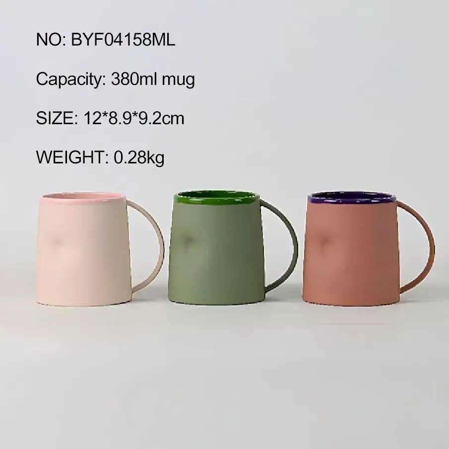 Właściwy model (BYF04158MS) występuje w trzech pastelowych odcieniach: jasnoszary, beż i turkus. Mieści 270 ml, mierzy 11,5 x 8,7 x 6,7 cm i waży 0,19 kg. Oba kubki mają podobną wysokość, ucieleśniając świeży i elegancki styl. Lewy model jest nieco większy i utrzymuje więcej, co pozwala klientom wybrać ten, który najlepiej odpowiada ich potrzebom.